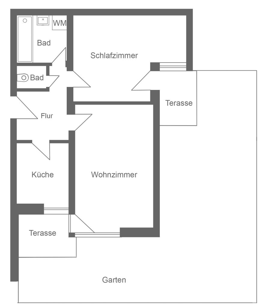 das Gebäude bis vor die Terrasse des Wohnzimmers erstreckt. Die Gartenpflege